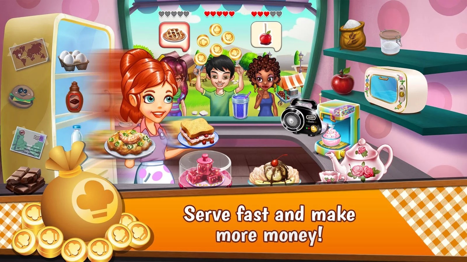 In this addictive time-management game you’ll have to reach the maximum speed and skills! Your kitchen is equipped fully with all the utensils you need, and you’ll find the more advanced and useful ones in the Shop! Take orders, cook and serve dishes and upgrade your tools to the best! Sounds fun? Roll up your sleeves, get ready to cook and make customers happy with various challenges in this cafe world! Survive the frenzy and become the greatest chef ever!